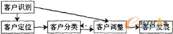 筆者認為,客戶識別是貫穿整個客戶關系管理運作流程的一條主線,也是企業(yè)判斷是否進行以及如何進行客戶獲取、客戶保持、關系終止活動的根本依據(jù)。這里筆者把客戶識別可以分為定位客戶、客戶分類、調(diào)整客戶和發(fā)展客戶幾個步驟(見圖1)。