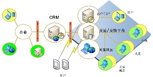 企業(yè)的社區(qū)營銷架構(gòu)不僅僅是在構(gòu)建一個(gè)網(wǎng)絡(luò)社區(qū),而是圍繞企業(yè)的應(yīng)用充分結(jié)合起來,包括企業(yè)的CRM系統(tǒng)、消費(fèi)者門戶、社區(qū)以及交易交換平臺(tái)等。如圖所示: