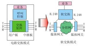 在電路交換網(wǎng)中,呼叫控制、業(yè)務提供以及交換矩陣均集中在一個交換系統(tǒng)中,而軟交換的主要設計思想是業(yè)務/控制與傳送/接入分離,各實體之間通過標準的協(xié)議進行連接和通信,以便在網(wǎng)上更加靈活地提供業(yè)務,見圖1。更具體地講,軟交換是一個基于軟件的分布式交換/控制平臺,它將呼叫控制功能從網(wǎng)關中分離出來,開放業(yè)務、控制、接入和交換間的協(xié)議,從而真正實現(xiàn)多廠家的網(wǎng)絡運營環(huán)境,并可以方便地在網(wǎng)上引入多種業(yè)務。