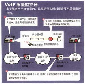 IP語(yǔ)音呼叫質(zhì)量無(wú)法用常規(guī)方式監(jiān)控。傳統(tǒng)的網(wǎng)絡(luò)監(jiān)控器的關(guān)注點(diǎn)是孤立的傳輸流統(tǒng)計(jì)數(shù)據(jù),而非固有的質(zhì)量、語(yǔ)音清晰度或最終用戶的感覺。這類傳統(tǒng)的工具提供有關(guān)鏈路吞吐量和利用率、抖動(dòng)、延時(shí)、錯(cuò)誤、包丟失總數(shù)或丟包率的孤立的數(shù)據(jù)。然而,這些統(tǒng)計(jì)數(shù)據(jù)沒有揭示呼叫質(zhì)量,因?yàn)樗鼈兒鲆暳蒜Оl(fā)丟失,不理會(huì)抖動(dòng)緩沖區(qū)造成的包丟棄,沒有考慮網(wǎng)絡(luò)故障對(duì)用戶感覺造成的影響。