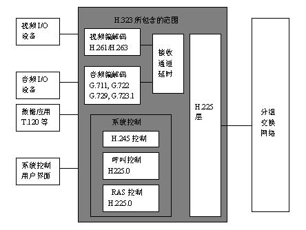 H.323是國(guó)際電信聯(lián)盟(ITU)的一個(gè)標(biāo)準(zhǔn)協(xié)議棧,該協(xié)議棧是一個(gè)有機(jī)的整體,根據(jù)功能可以將其分為四類協(xié)議,也就是說該協(xié)議從系統(tǒng)的總體框架(H.323)、視頻編解碼(H.263)、音頻編解碼(H.723.1)、系統(tǒng)控制(H.245)、數(shù)據(jù)流的復(fù)用(H.225)等各方面作了比較祥細(xì)的規(guī)定。