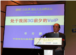 國務(wù)院發(fā)展研究中心局長鄧壽鵬的發(fā)言“處于我國3G前夕的VoIP”正式拉開了本次大會(huì)的序幕。鄧壽鵬局長的發(fā)言詳細(xì)闡述了3G和VoIP在中國的發(fā)展現(xiàn)狀,客觀分析了這兩個(gè)新技術(shù)存在的不足以及未來將帶來的巨大生產(chǎn)力進(jìn)步和其中潛在的巨大商機(jī), 對(duì)運(yùn)營商傳統(tǒng)通信方式的沖擊以及對(duì)其轉(zhuǎn)型為全業(yè)務(wù)服務(wù)提供商的推動(dòng)力。