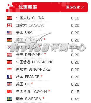 國內(nèi)長途0.10元/分鐘,國際長途都不相同,從官方列表上看,支持的國家不是很多。軟件支持網(wǎng)絡(luò)銀行在線充值和銀行普通匯款兩種充值方式。