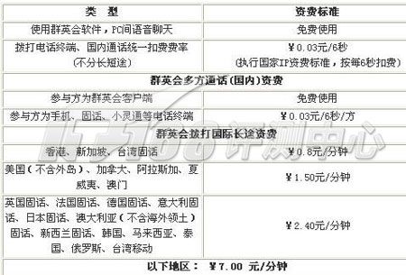 群英會(huì)計(jì)費(fèi)方式以秒為單位,撥打國內(nèi)電話為0.03元/秒。支付方式為通過網(wǎng)絡(luò)購買充值卡進(jìn)行充值。