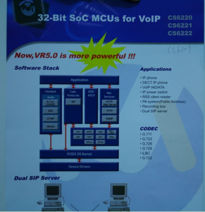 網(wǎng)關器及IP PBX應用的市場的產(chǎn)品包括CS6209、CS6220、CS6221、CS6222、CS6223等,并提供了非常完善的解決方案。為了更好的服務于大陸客戶,目前,世紀民生在大陸的深圳、武漢和上海都設有分公司,并且在各分公司之間已經(jīng)在穩(wěn)定的使用VoIP來進行溝通。