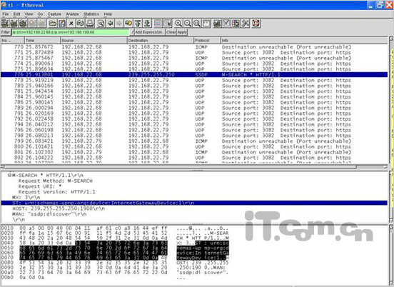 我們?cè)诰钟蚓W(wǎng)中放入兩臺(tái)callfreee設(shè)備,同時(shí)接入一臺(tái)PC運(yùn)行ethereal軟件進(jìn)行抓包來分析協(xié)議。