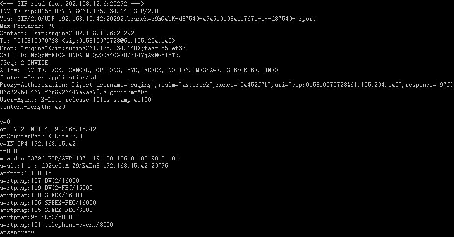 X-Lite(UA) ------> asterisk PBX(讀取SIP INVITE消息)