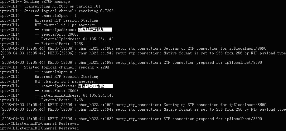 表示軟交換Asterisk與華為8010語音網關的H323連接已經成功建立