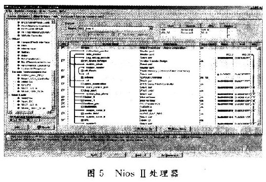 首先使用SOPC Builder系統(tǒng)工具構建了一個NiosCPU作為整個系統(tǒng)的處理器核,它的Avalon總線對其他接口及控制器進行指令和數據傳輸,包括:由內部定時器控制的Avalon總線;為Nios