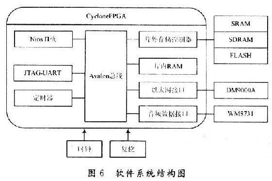 SOPC系統(tǒng)的平臺包括:Altera的Nios處理器、Aval—on總線,片內外存儲器以及外設模塊等。利用SOPCBuilder,用戶可以很方便地將處理器、存儲器和其他外設模塊連接起來,形成一個完整的系統(tǒng)。其中,SOPC