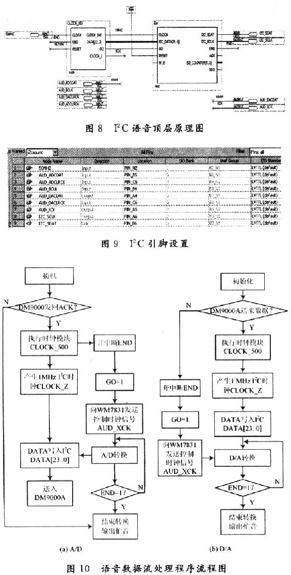 由于語音編解碼器的處理延時是影響VoIP話音質量的因素之一,為了保證語音編解碼的實時性,軟件系統(tǒng)在控制WM8731編解碼器的編解碼同時,加入了I2C語音模塊,以實現語音數據的實時處理。它采用自頂向下設計方法利用QuartusⅡ進行設計。
