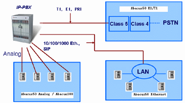 Abacus50系列產(chǎn)品分為Abacus50-Analog,Abacus50-E1/T1,Abacus50-Ethernet。其中,Abacus50-Analog具有2個(gè)FXO模擬接口,可以支持Loop-Start模擬協(xié)議,并支持MOS/PSQM/PESQ語(yǔ)音質(zhì)量分析;Abacus50-Analog支持的媒體方式包括音調(diào),話音,V.34Modem,T.30傳真等。Abacus50-E1/T1具有4個(gè)E1或者T1接口,可以支持SS7,ISDN-PRI,V5.1/V5.2,CAS(隨路信令)等PSTN信令,并支持MOS/PSQM/PESQ語(yǔ)音質(zhì)量分析;Abacus50-E1/T1支持的媒體方式同樣包括音調(diào)、話音和T.30傳真等。Abacus50-Ethernet具有兩個(gè)Ethernet接口(GE光口或者10/100/1000M電口),可以支持SIP/H.323/MGCP/H.248等VoIP協(xié)議,并支持MOS/PSQM/PESQ語(yǔ)音質(zhì)量分析;Abacus50-Ethernet支持的媒體方式包括音調(diào),G.711/G.723/G.726/G.729/AMR/AMR-WB/EVRC話音,T.30/T.38傳真,H.263/H.264視頻等。