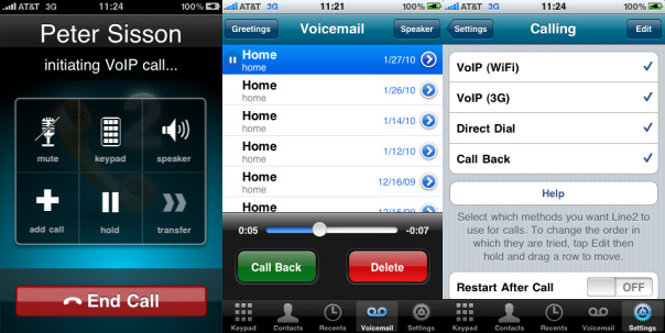一家來自舊金山的VoIP廠商公布了一款iPhone上運(yùn)行的VoIP應(yīng)用,Line2.這款僅售99美分的程序可以讓你在Wi-Fi與3G網(wǎng)絡(luò)上撥打VoIP電話,只要每月14.95美元,您就可以隨意通過這款網(wǎng)絡(luò)電話撥打美國和加拿大,這一切只需要您有3G或者Wi-Fi信號(hào)即可。