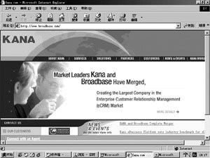 Kana是美國在線服務(wù)領(lǐng)域的知名公司,其eCRM軟件在客戶關(guān)系管理領(lǐng)域極具代表性。Kana公司剛開始只提供電子郵件響應(yīng)管理技術(shù),但是通過一系列的收購舉措,Kana已經(jīng)可以提供端到端的客戶服務(wù)解決方案。最近,Kana并購了美國Broadbase公司,成為在線客戶服務(wù)領(lǐng)域的“巨頭”。該公司的旗艦級產(chǎn)品主要是針對Email回復(fù)的客戶服務(wù)系統(tǒng),Kana的Email客戶服務(wù)軟件被Yahoo!和AOL等著名的網(wǎng)絡(luò)公司采用。