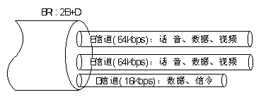 ◆基本速率接口(BRI:Basic Rate Interface),該速率由兩個承載信道和一個數(shù)據(jù)控制信道構(gòu)成,稱為2B+D,其中B(Bearer)為標(biāo)準PCM速率64kbps,D(Data)為16kbps。該速率適用于家用或小型企業(yè)需要。