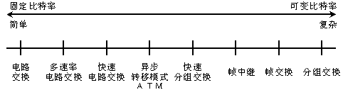 在通信網(wǎng)絡(luò)發(fā)展過程中,出現(xiàn)了多種信息傳輸方式,它們分別適應(yīng)不同業(yè)務(wù)速率,如下圖所示。這里只對比電路傳送模式和分組傳送模式兩個極端情況,對其他模式,讀者可以自行參照下圖和相關(guān)資料。