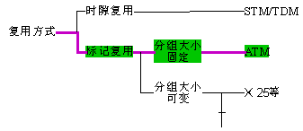 ATM即Asynchronous Transfer Mode,譯為異步轉(zhuǎn)移模式,或稱為異步傳輸模式、異步傳送模式。ATM是B-ISDN的核心技術(shù)。如前所述,電路交換和分組交換都不能適應(yīng)未來的寬帶、多速率、不同QoS業(yè)務(wù)的發(fā)展需求。為此,逐漸推出了各種傳輸模式。其中最有吸引力的便是ATM。它們的相互關(guān)系可以簡明地表示如下。