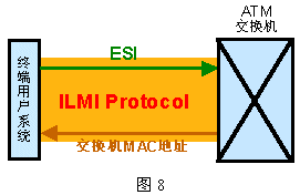 在呼叫建立過程中終端系統(tǒng)和ATM交換機(jī)之間(UNI)通過過渡性本地管理接口(ILMI:Interim Local Management Interface)協(xié)議完成地址注冊。注冊過程如下圖所示。