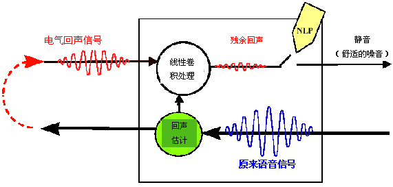 符合ITU G.168(2000)標準的回聲消除器能夠消除電氣(混合)回聲。這類設(shè)備在其運行當中采用了"兩段式"方法。在第1階段,使用線性卷積處理消除了大部分回聲。在第2階段,采用了非線性處理器(NLP)以消除殘存的回聲,這一部分相對較小。對殘存回聲信號的辨識是一件很簡單的任務(wù),這是因為它的功率電平明顯低于原始的語音信號。