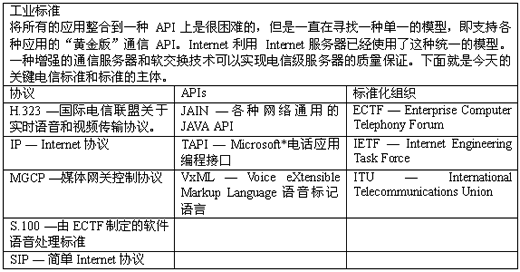所有標準的關(guān)鍵是一個壓倒一切的觀點:將解決方案建立在開放的,標準化的硬件和軟件上。到2003年有25億臺電腦投入使用,Internet服務(wù)器給了它們一個接入信息海洋的標準途徑。與此類似,開放的計算機電話(CT:computer
