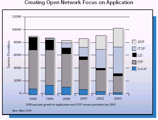 關(guān)于新的業(yè)務(wù)提供商的前景,ASP是最為熱門的,由于整個行業(yè)的外購趨勢,使得它吸引了數(shù)目巨大的風險債券和投資。但是如果說他們只是關(guān)注外購那就太籠統(tǒng)了。事實上一些公司是以托管為中心的,一些是以連通性為中心的,還有一些是以應用為中心的。
