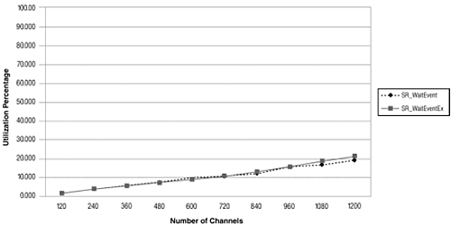 這部分提供了使用正確的線程和通道數(shù)組合的測試結(jié)果, 使用的是擴(kuò)展異步編程模式sr_waitEvtEx().