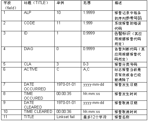 12.3.1 報(bào)警記錄文件格式: