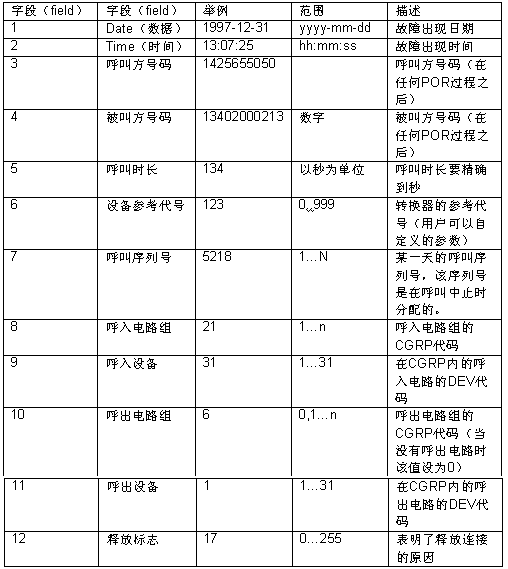 12.3.3 呼叫失敗文件格式:
