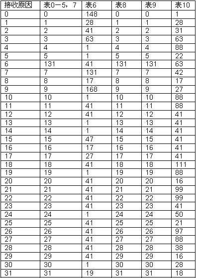 本節(jié)詳細(xì)描述了10個(gè)預(yù)配置的接受拆線原因到內(nèi)部標(biāo)識的映射表。當(dāng)前表0-5和7都是相同的。表6、8、9和10不同。