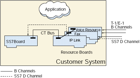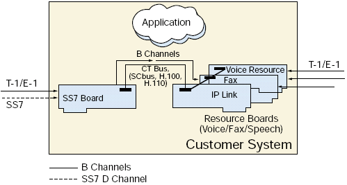 - 其它 T-1/E-1 通道被語音板卡管理,可通過CTbus路由到七號信令板卡