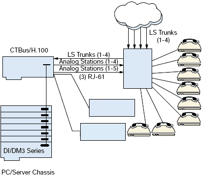 DSPs 直接有PCM連接到CTbus ASIC, 它提供SCbus/CTbus(H.100)和模擬座席接口之間PCM交換的功能.