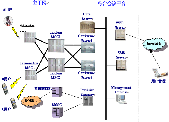 概述 。。今年來(lái),隨著電話會(huì)議技術(shù)的不斷成熟,基于計(jì)算機(jī)平臺(tái)的會(huì)議型業(yè)務(wù)應(yīng)用越來(lái)越活躍,其中電話會(huì)議系統(tǒng)、QQ聊天系統(tǒng)以及BGM便是主要熱門應(yīng)用。 。。交互式電話會(huì)議系統(tǒng)是一個(gè)真正由用戶自己管理的智能型交互式電話會(huì)議系統(tǒng),是目前國(guó)際上流行的一種召開會(huì)議的新形式。客戶利用它可以隨時(shí)隨地召開本市、國(guó)內(nèi)或國(guó)際的電話會(huì)議,人們無(wú)論身在何處,只需撥打一個(gè)事先約定的電話會(huì)議號(hào)碼和密碼,即可參加會(huì)議,并且能自由組會(huì),同時(shí)發(fā)言,自由交談。可以同時(shí)招開數(shù)十方,適用于商務(wù)研討、緊急討論會(huì)、信息匯總會(huì)、親友聚會(huì)等各種各樣的會(huì)議。