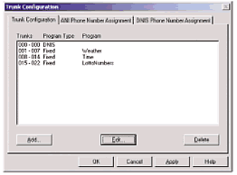 用戶可以為項(xiàng)目中的任何一個(gè)應(yīng)用程序分配一個(gè)中繼資源或者多個(gè)中繼資源。也可以根據(jù)從那些呼叫線路受到的ANI或者DNIS信息來決定應(yīng)該為程序分配哪種資源。