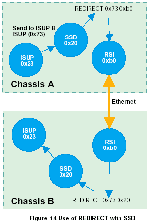 運(yùn)行在信令卡上的協(xié)議模塊,接收端(對(duì)方)的REDIRECT語句應(yīng)該通過ssd或ssd的驅(qū)動(dòng)(通常情況下使用module_id為0x20)來對(duì)消息進(jìn)行重定向,如圖14所示。