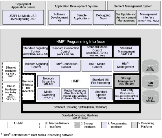 HMP 軟件實(shí)現(xiàn)了過(guò)去通常使用專(zhuān)有的, 底產(chǎn)量的硬件,而現(xiàn)在運(yùn)行在高產(chǎn)量的建筑模塊上. 這種模塊化的下一代技術(shù)可以大大地減少實(shí)施傳統(tǒng)和增強(qiáng)電信服務(wù)的成本.