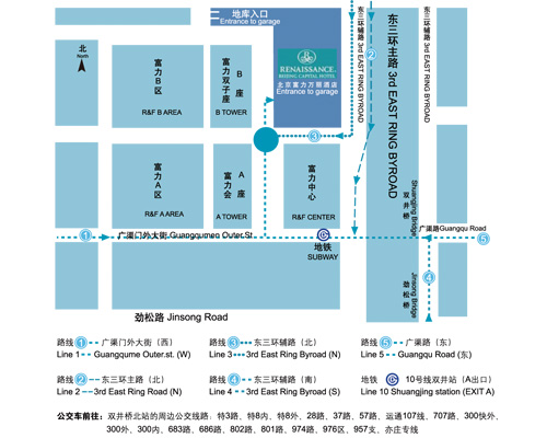 場(chǎng)館交通信息 名 稱:北京富力萬(wàn)麗酒店 Renaissance Beijing Capital Hotel 公 交:特3路/特8外環(huán)主路/特8快車(chē)內(nèi)環(huán)/特8內(nèi)環(huán)主路/特8快車(chē)外環(huán)/特8外環(huán)/特8內(nèi)環(huán)/28路/7區(qū)間(高峰車(chē))/37路/57路/運(yùn)通107線/214夜班/300內(nèi)環(huán) 300快車(chē)內(nèi)環(huán)/300快車(chē)外環(huán)/300外環(huán)/348路/683路/686路/707路/801路/802路/974路/976區(qū)間 雙井橋北站下車(chē) 地 鐵:10號(hào)線雙井站下