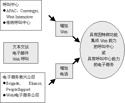 這些服務(wù)商對于那些已經(jīng)利用他們處理呼叫的企業(yè)來講,會成為首選的服務(wù)商。傳統(tǒng)的呼叫中心在尋找那些理解他們的需求的供應(yīng)商,他們可能會選擇具有電子商務(wù)服務(wù)處理能力的傳統(tǒng)服務(wù)公司。也許新興公司在評估這些公司提供的經(jīng)驗(yàn),穩(wěn)定性,和資源完整性后,也會選擇他們。
